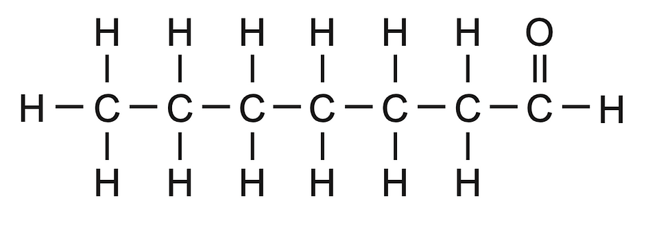 Table R on the reference table lists all the functional groups for organic compounds and their names. The functional group for this molecule is aldehyde. (C=O). The name should end in "al". The only name that end in al is haptanal, Choice 3.